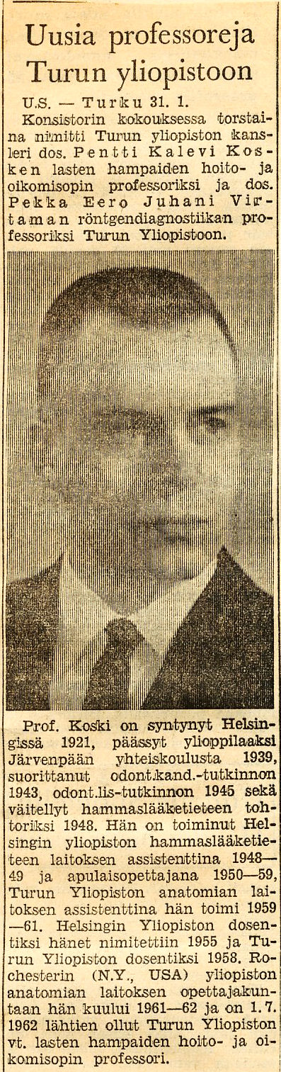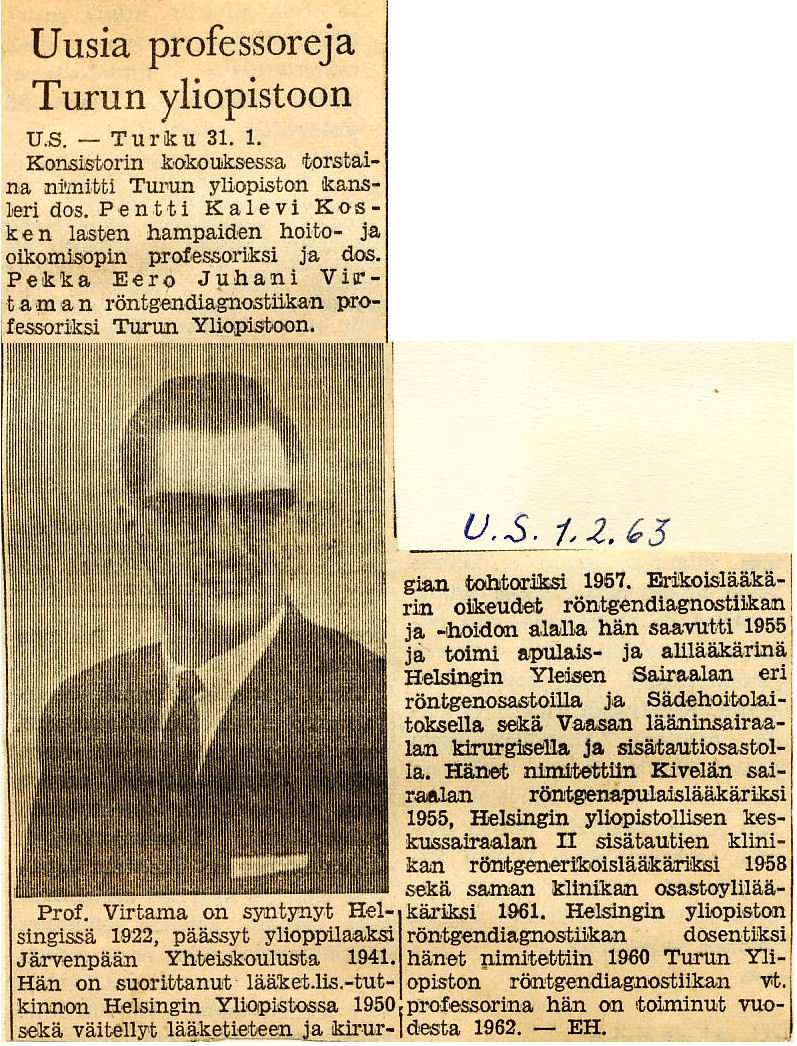 Röntgendiagnostiikan professori Turun Yliopisto 1.3.1963 alkaen |