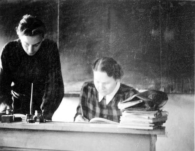 Aune Miettinen opettajien kotikokoontumisissa.